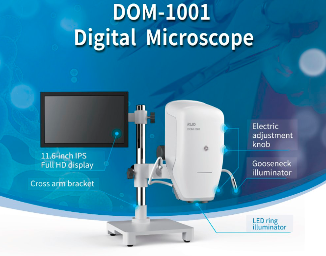 DOM-1001 is a digital microscope without eyepiece, with dual light sources and a cross arm bracket. High-end optical components and 16 million pixel CMOS camera can be used to capture real-time images and video, realizing multi-person sharing. Mainly used in life science, university teaching, industrial manufacturing, material science and other fields.